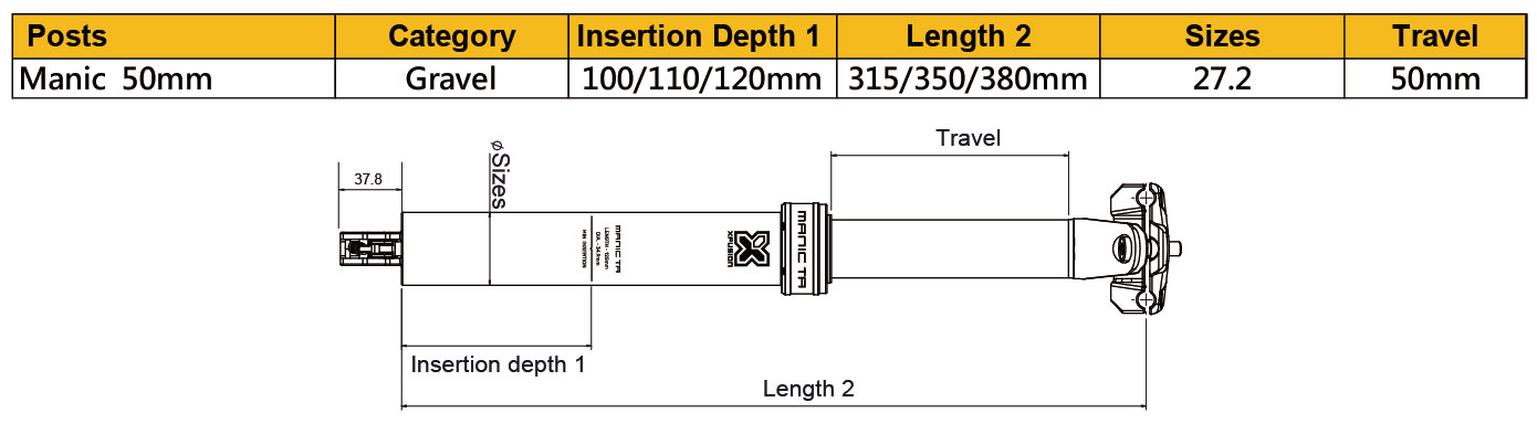 - Length: 50mm:350mm(315/380mm Specialized only) / 100mm:350mm